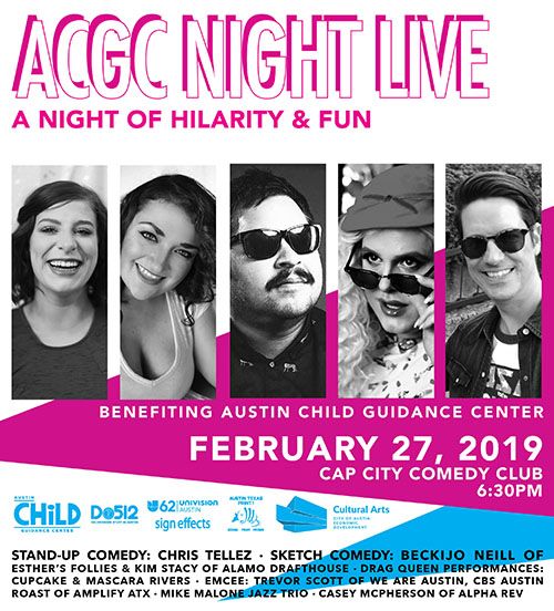 Join us for the 3rd Annual ACGC NIGHT LIVE, a comedy variety show benefiting Austin Child Guidance Center (ACGC). We have some great acts in store and for a great cause that helps ensure children continue to receive vital mental health care services at ACGC.